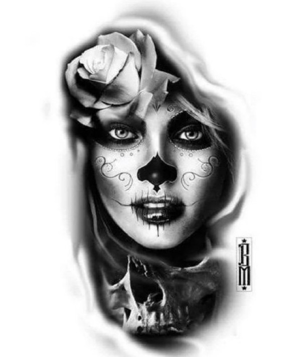 32组黑灰女郎主题的纹身手稿图片