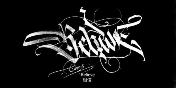 15款带中文对照表的英文花体字纹身设计手稿素材图片