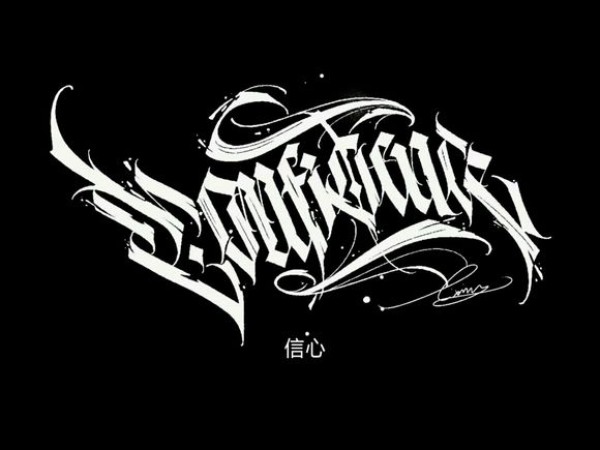 15款带中文对照表的英文花体字纹身设计手稿素材图片