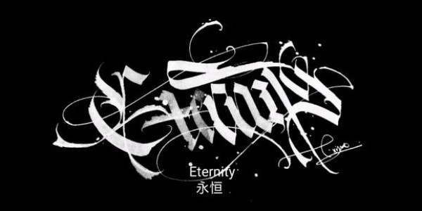 15款带中文对照表的英文花体字纹身设计手稿素材图片