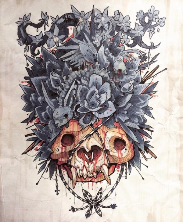一组创意的school彩色妖魔鬼怪纹身手稿图片