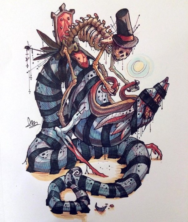 一组创意的school彩色妖魔鬼怪纹身手稿图片