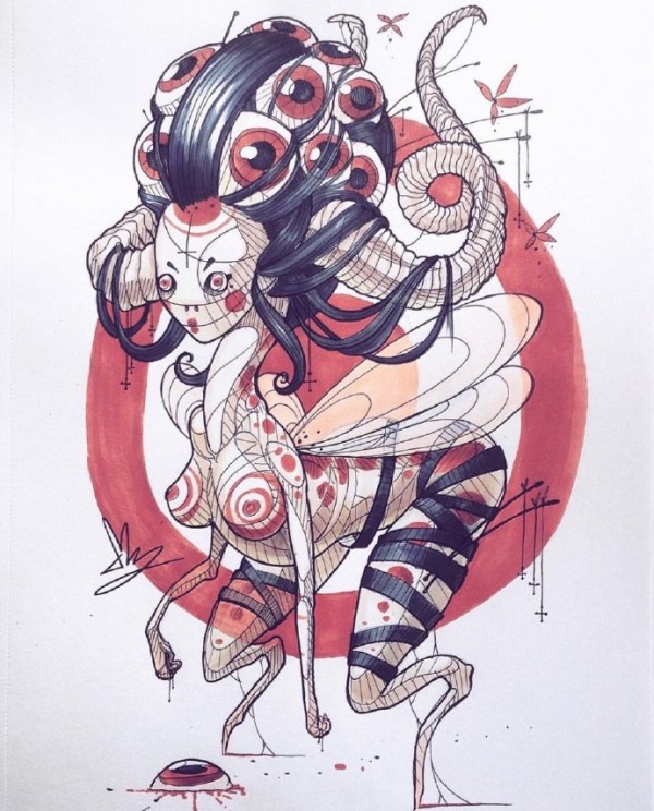 传统艺妓般若纹身图案手稿