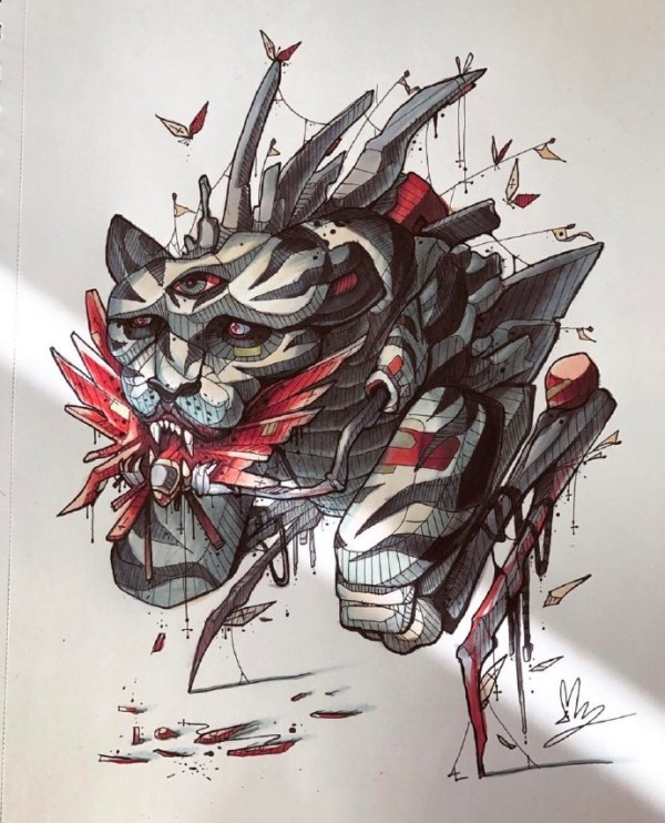 一组创意的school彩色妖魔鬼怪纹身手稿图片