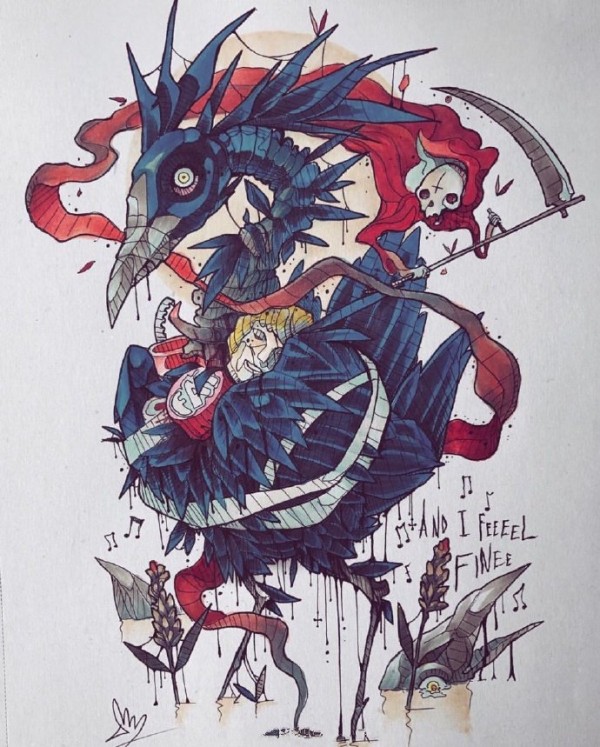 一组创意的school彩色妖魔鬼怪纹身手稿图片
