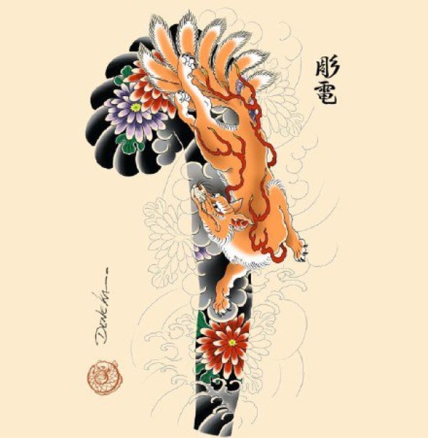 传统艺妓般若纹身图案手稿