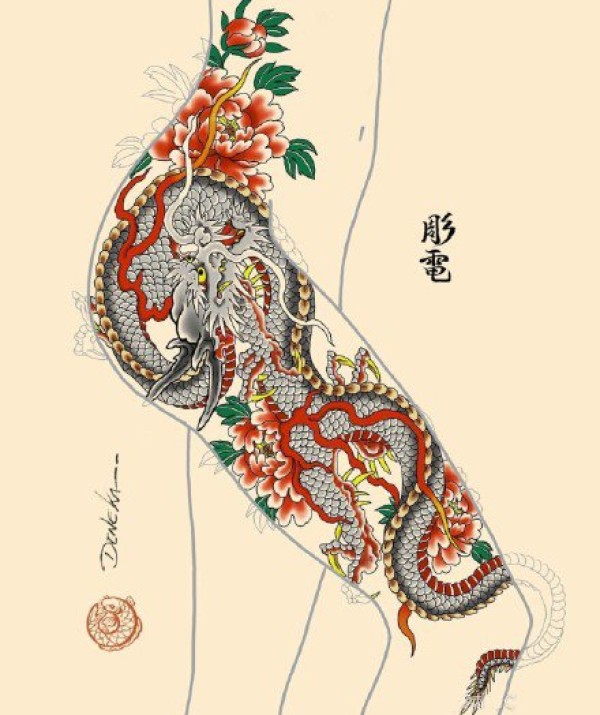 传统艺妓般若纹身图案手稿