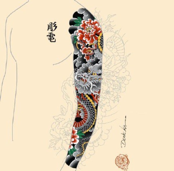 一组满背大气九龙拉棺纹身图案作品和手稿