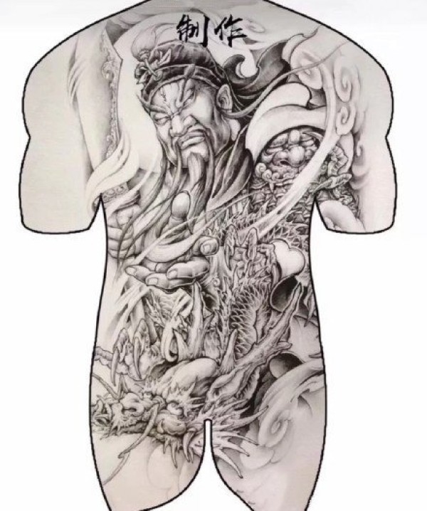 一组满背大气九龙拉棺纹身图案作品和手稿