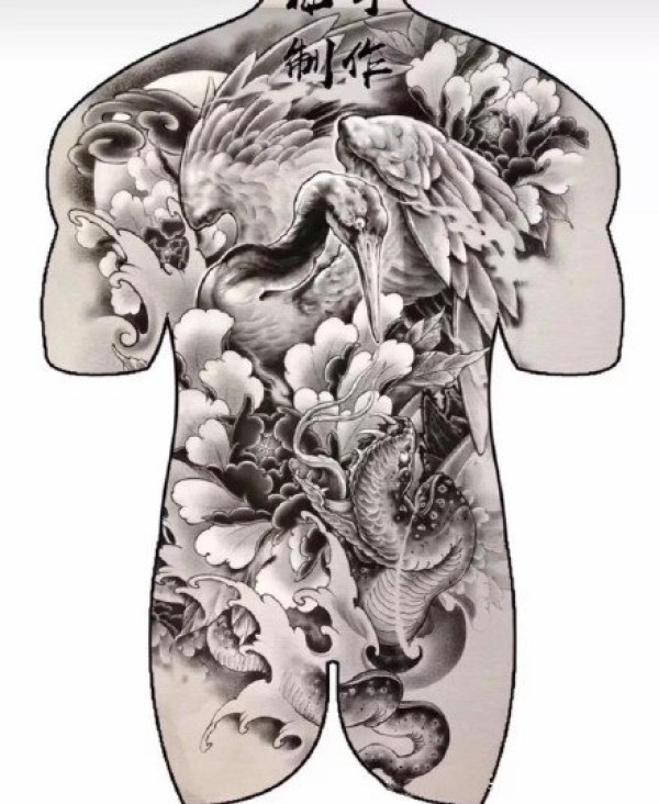 一组满背大气九龙拉棺纹身图案作品和手稿