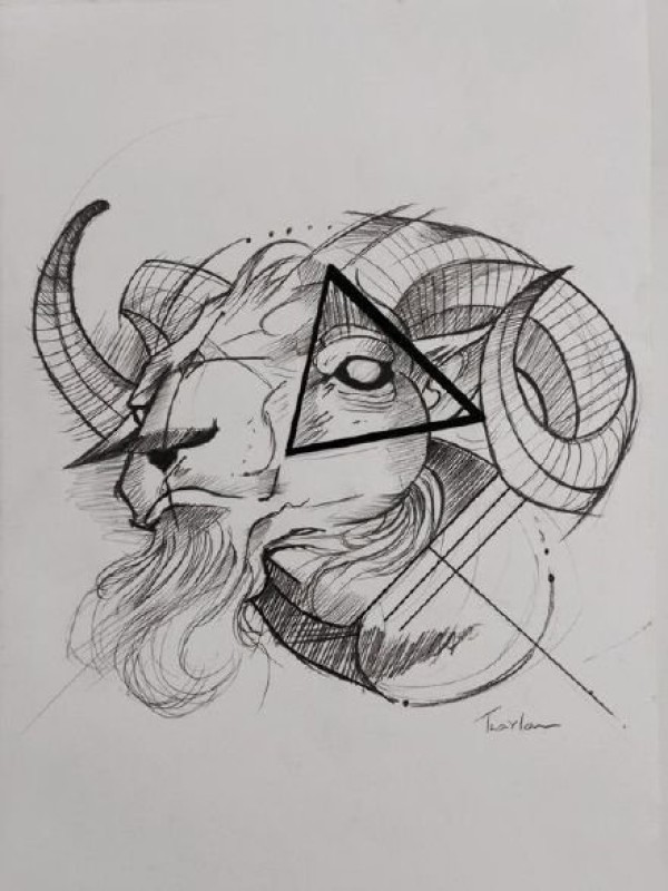 半甲唐狮手稿 传统的9款唐狮主题半甲纹身手稿图片
