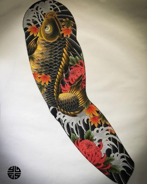 一组满背大气九龙拉棺纹身图案作品和手稿