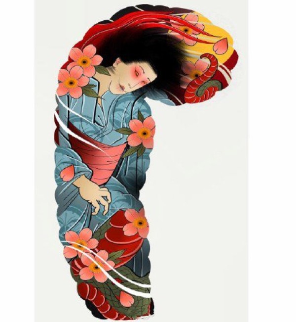 传统艺妓般若纹身图案手稿