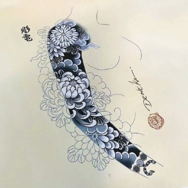 一组满背大气九龙拉棺纹身图案作品和手稿