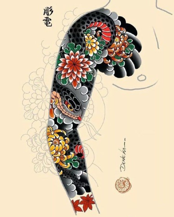 一组满背大气九龙拉棺纹身图案作品和手稿
