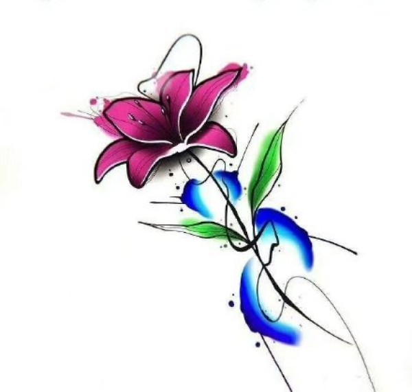 14款彩色的水彩花卉纹身手稿图片