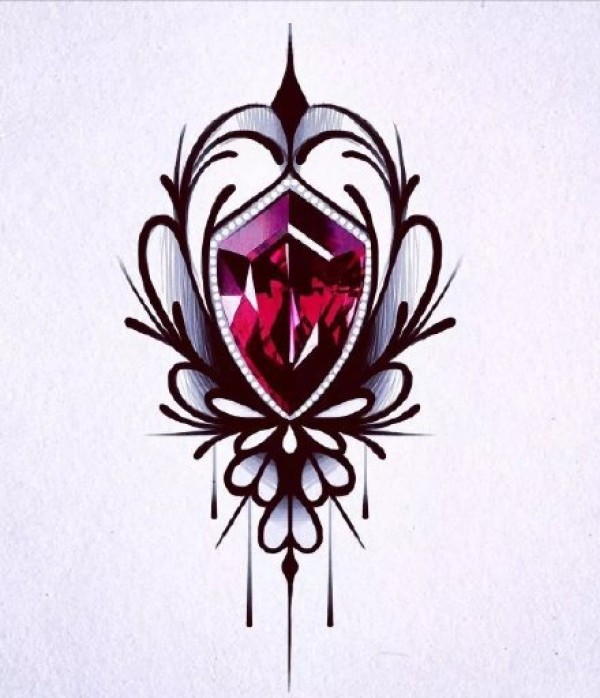 美式school风格的9款玫瑰宝石花胸纹身手稿