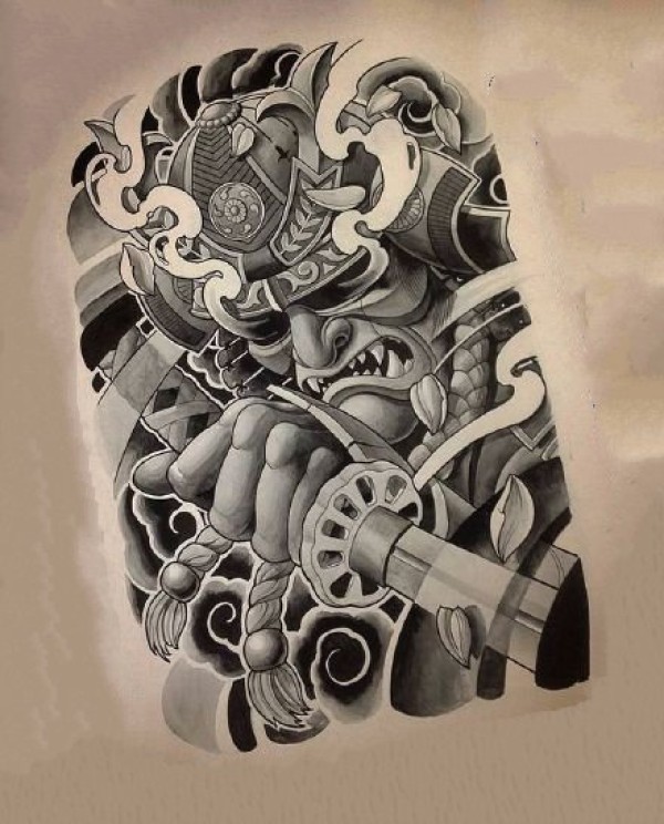 一组满背大气九龙拉棺纹身图案作品和手稿