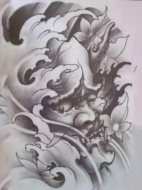 半甲唐狮手稿 传统的9款唐狮主题半甲纹身手稿图片