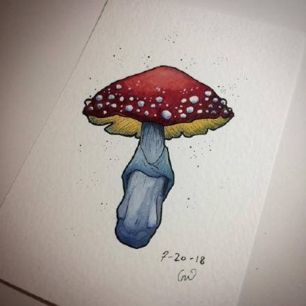 一组创意的蘑菇纹身手稿图片欣赏
