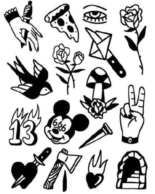 38组适合拼接的school黑灰纹身手稿图片
