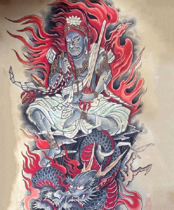 34款属鸡的守护神-不动明王大满背等纹身手稿图片