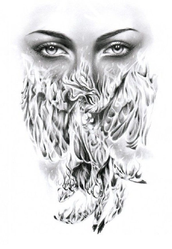 传统艺妓般若纹身图案手稿