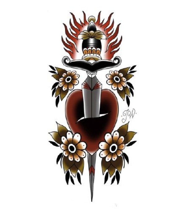 41款oldschool的小清新彩色纹身手稿图案
