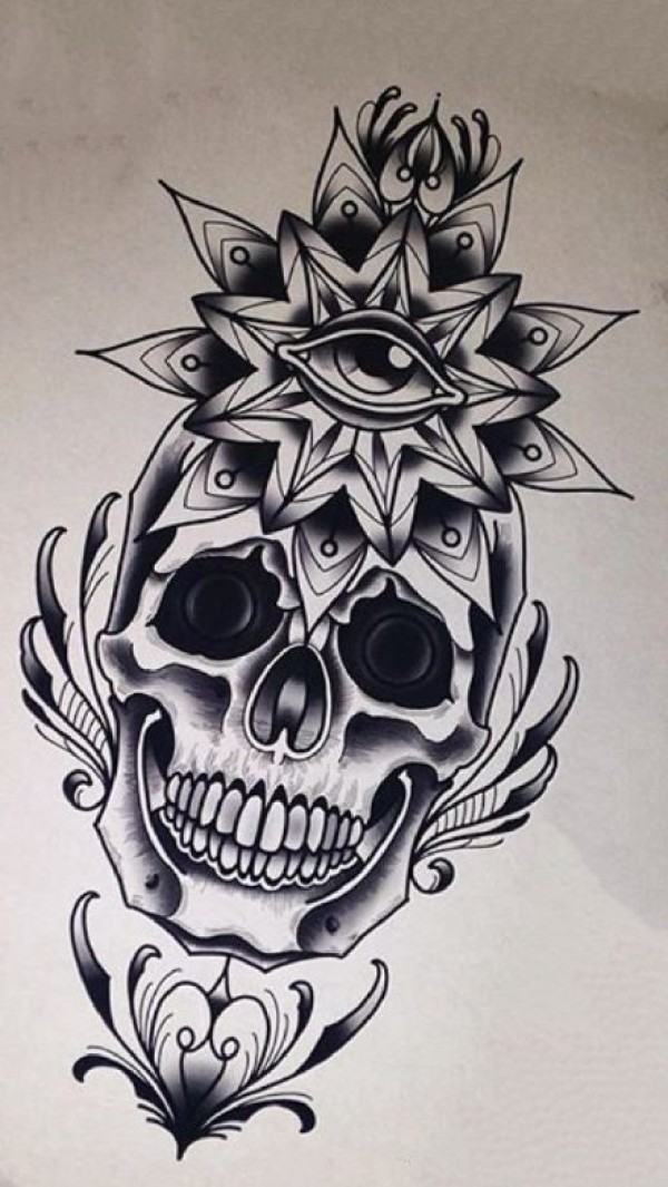 33款欧美黑色的点刺骷髅纹身手稿图片