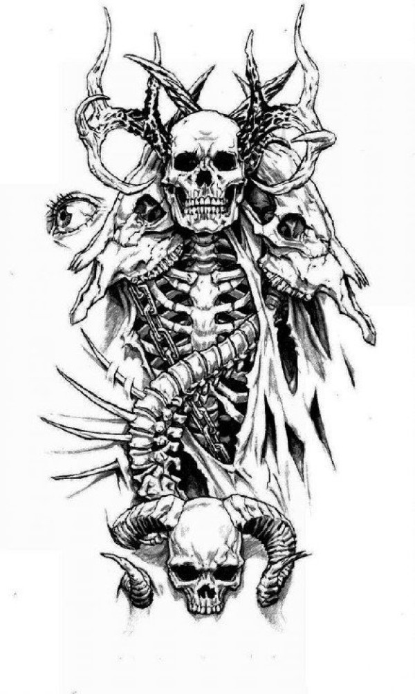 33款欧美黑色的点刺骷髅纹身手稿图片