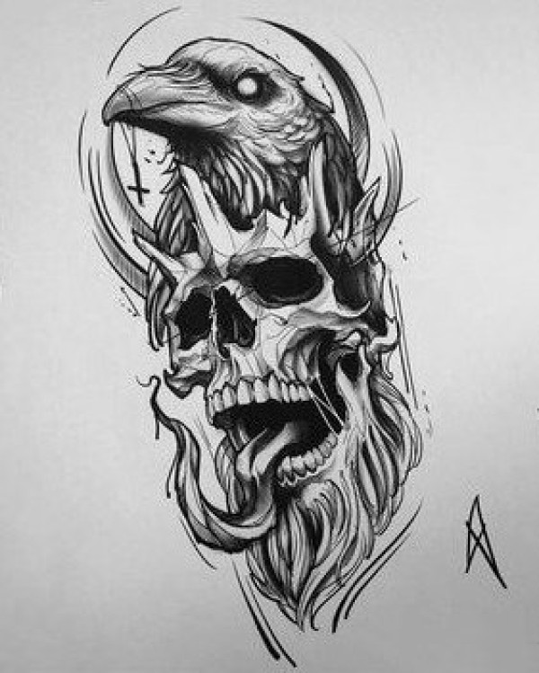 33款欧美黑色的点刺骷髅纹身手稿图片