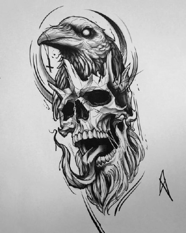 33款欧美黑色的点刺骷髅纹身手稿图片