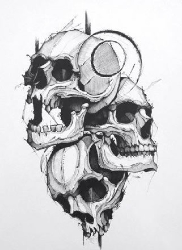 33款欧美黑色的点刺骷髅纹身手稿图片