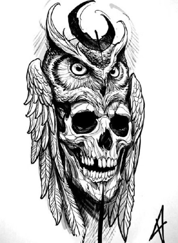 33款欧美黑色的点刺骷髅纹身手稿图片