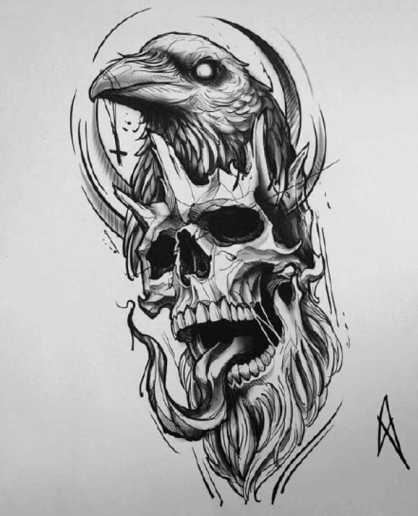 33款欧美黑色的点刺骷髅纹身手稿图片