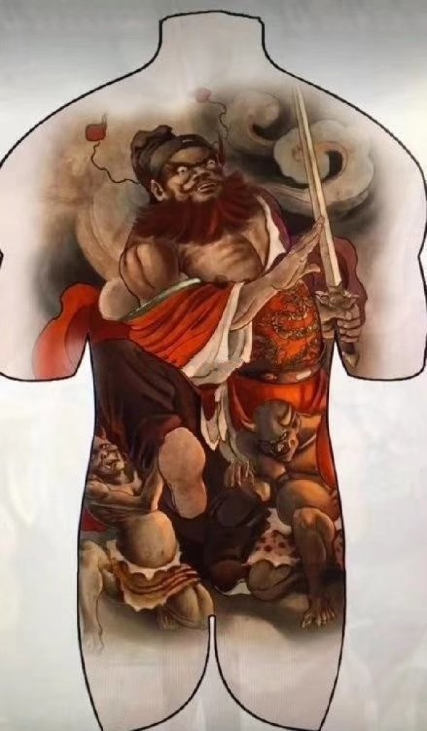 一组满背大气九龙拉棺纹身图案作品和手稿