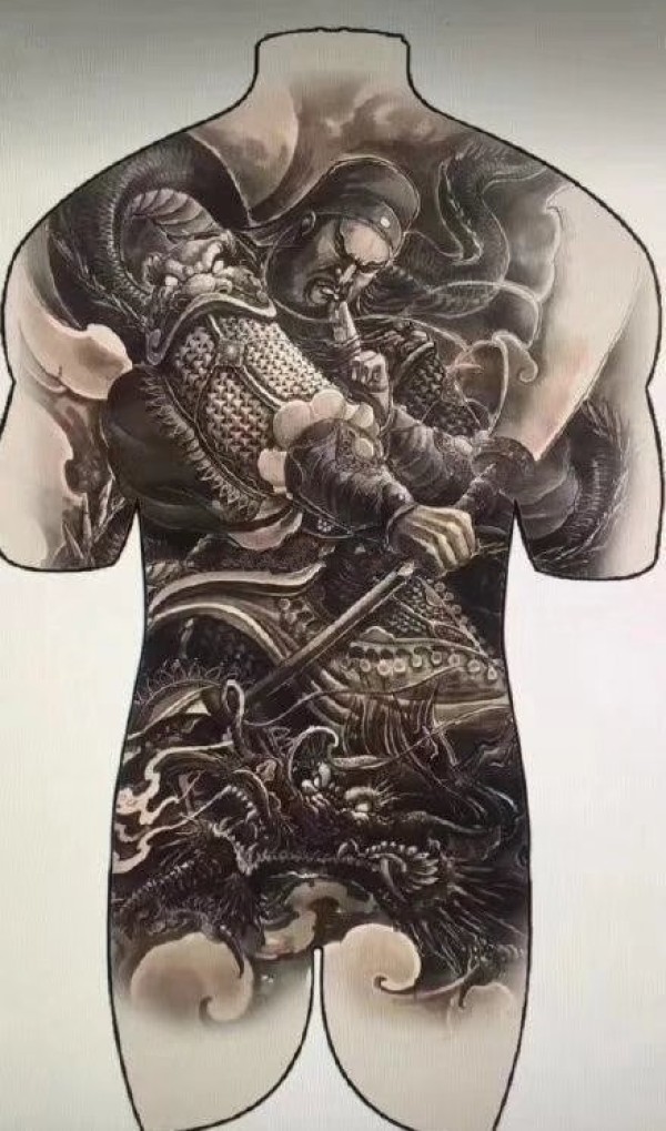 一组满背大气九龙拉棺纹身图案作品和手稿