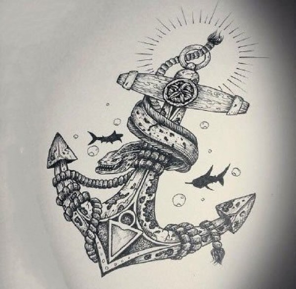 37款船锚纹身主题的手稿图片
