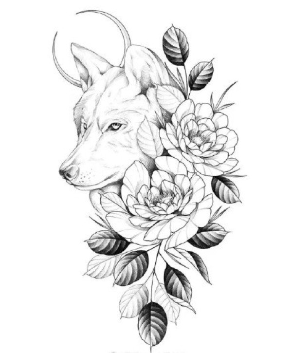 动物和素花搭配的一组漂亮纹身手稿图片