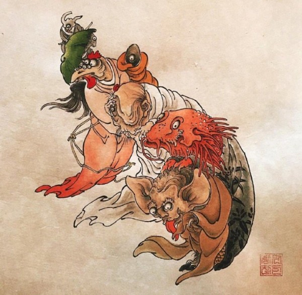 半甲唐狮手稿 传统的9款唐狮主题半甲纹身手稿图片