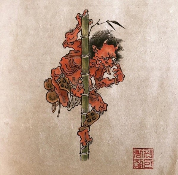 半甲唐狮手稿 传统的9款唐狮主题半甲纹身手稿图片