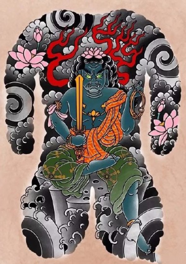 一组满背大气九龙拉棺纹身图案作品和手稿