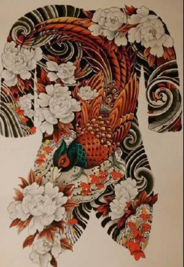 日式大板雾满背纹身手稿