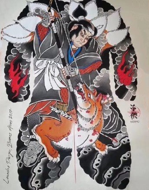 半甲唐狮手稿 传统的9款唐狮主题半甲纹身手稿图片