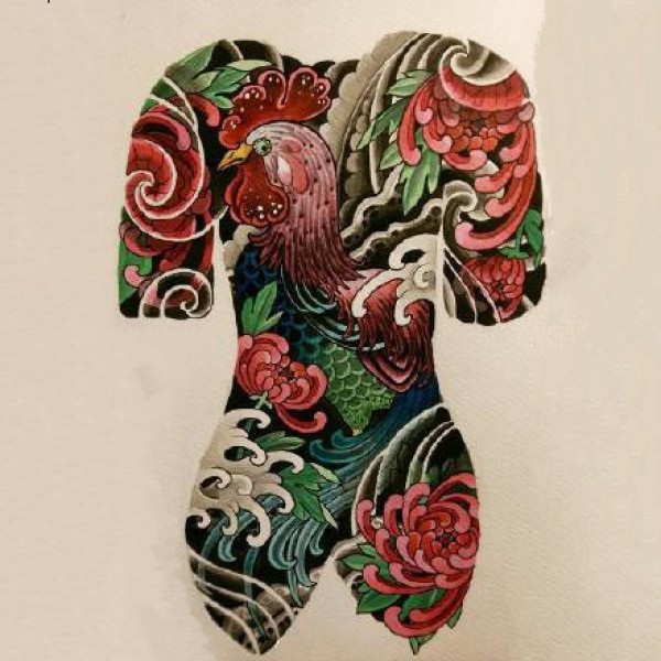 一组满背大气九龙拉棺纹身图案作品和手稿