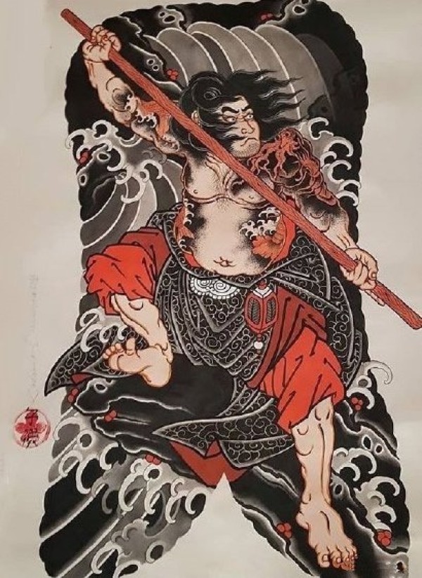 一组满背大气九龙拉棺纹身图案作品和手稿