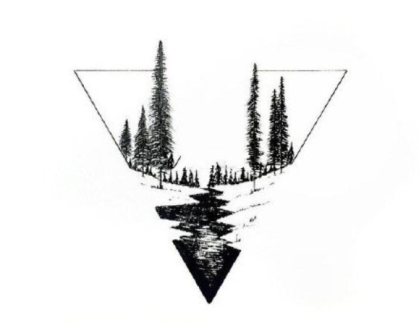 35款三角菱形等几何点刺小风景纹身手稿图片