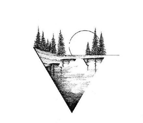 35款三角菱形等几何点刺小风景纹身手稿图片