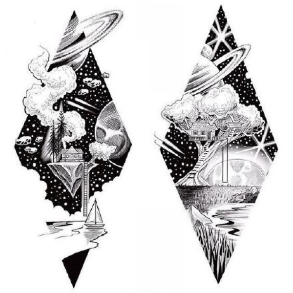35款三角菱形等几何点刺小风景纹身手稿图片