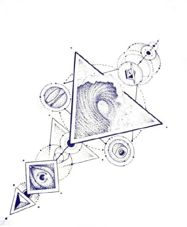 35款三角菱形等几何点刺小风景纹身手稿图片